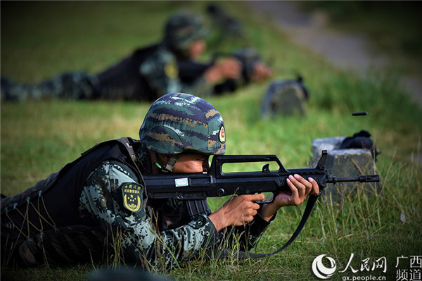 特戰(zhàn)隊(duì)員在進(jìn)行步槍記憶指向射擊