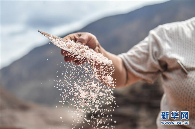 西藏芒康縣納西民族鄉(xiāng)加達村村民在鹽田曬鹽(6月4日攝)。新華社記者晉美多吉攝