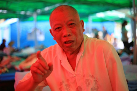 雙河鎮(zhèn)大水村70歲大爺李國(guó)付講述震后故事。(人民網(wǎng)朱虹 攝)