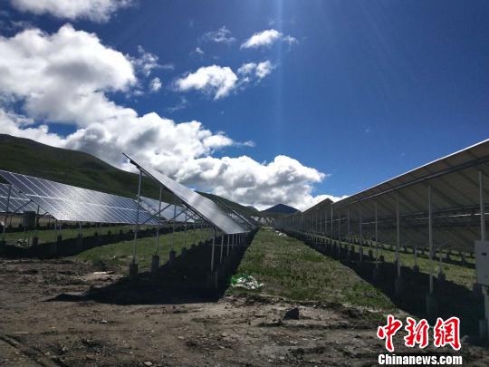 圖為青海果洛藏族自治州瑪沁縣29.1兆瓦村級(jí)扶貧光伏電站一隅。 雒文清 攝