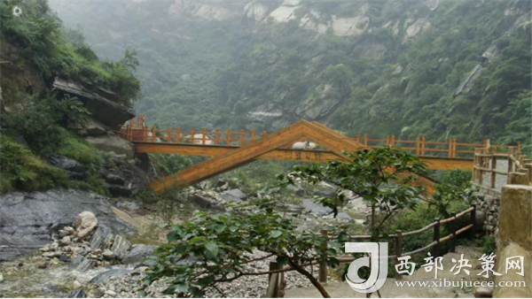 踏進(jìn)峪口,頭頂是遮天蔽日的綠色,四周水聲潺潺,鳥鳴悅耳,空谷幽靈,沉靜自然,涼爽的山風(fēng)夾雜著花草的芳香,瞬間就滋潤(rùn)了燥熱的心情。迎著溪谷逆水而上,山的奇特與水的靈秀交織在一起,伴著水聲,綿延著向更遠(yuǎn)處伸展。若有情致,卷起褲腿,或穿上沙灘鞋,或赤足,踏著被溪水長(zhǎng)久沖刷平整光滑的大石頭,任由清涼通透的溪水撫摸雙足,沁心入骨,仿佛拾回了童年的歡樂,煩擾憂愁全無蹤影。臨水而筑的棧道,全程依水而行,曲徑通幽,每轉(zhuǎn)一道彎,都是一幅新景。