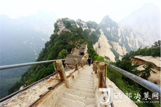 華山!險中顯奇,奇中藏秀、秀中驚魂:棧道懸掛腳下,煙嵐掩幽壑莫測高深疑通仙苑門戶;險徑高飄頭頂,碧樹漫荒途神秘玄妙似達天界路徑。解放軍智取華山,飛崖走壁如天降之神兵;韓愈勇攀蒼龍嶺,臨淵浩嘆山路心路難行;軍校生險道救人,熱血洗滌華岳樹碧山青;“替天行道”建索道,自古華山一條路成舊時風(fēng)景。“人生無處不巉巖”,山高路險凸顯登攀精神。居華岳之高居高望遠暢胸懷,臨華岳之險臨危不懼悟人生。