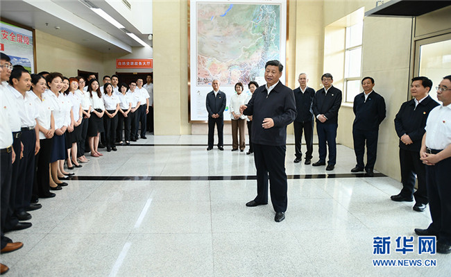 7月15日至16日,中共中央總書記、國家主席、中央軍委主席習(xí)近平在內(nèi)蒙古考察并指導(dǎo)開展“不忘初心、牢記使命”主題教育。這是16日上午,習(xí)近平到內(nèi)蒙古自治區(qū)自然資源廳,實(shí)地調(diào)研指導(dǎo)開展“不忘初心、牢記使命”主題教育。 新華社記者 謝環(huán)馳 攝