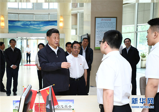 7月15日至16日,中共中央總書記、國家主席、中央軍委主席習(xí)近平在內(nèi)蒙古考察并指導(dǎo)開展“不忘初心、牢記使命”主題教育。這是16日上午,習(xí)近平在內(nèi)蒙古自治區(qū)自然資源廳自然資源政務(wù)大廳同工作人員交談,了解開展主題教育和落實(shí)便捷高效政務(wù)服務(wù)等情況。 新華社記者 謝環(huán)馳 攝