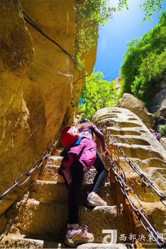 “自古華山一條路”就是當(dāng)?shù)厝怂f的“華山峪”登山道,包括了自古以來華山唯一登山道上的沿途各景點(diǎn),連起來就是通常所說的“自古華山一條路”。登華山最大的樂趣即為登山本身,一邊克服種種山路的艱險(xiǎn),一邊移步換景觀賞沿途風(fēng)光,所以這條經(jīng)典的登山路線至今仍然是登華山的最佳選擇。