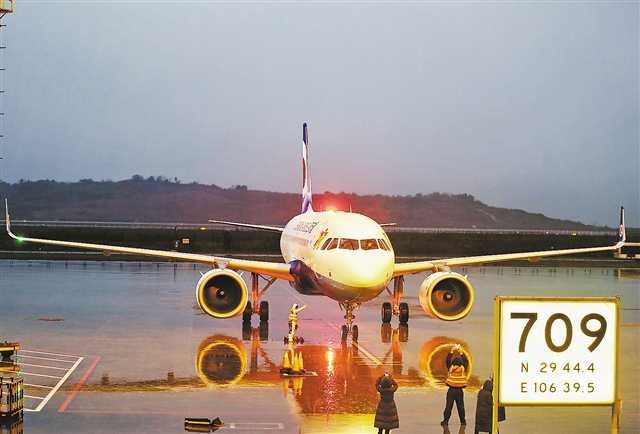 2018年12月30日凌晨,利用中新(重慶)互聯(lián)互通項目和自由貿(mào)易疊加優(yōu)勢,重慶航空引進(jìn)的第五架空客A320neo飛機(jī)抵達(dá)江北國際機(jī)場。 (重慶航空供圖)