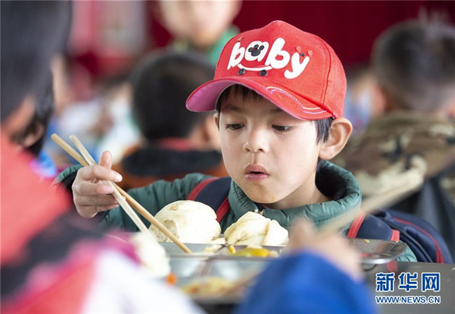 自實(shí)施農(nóng)村義務(wù)教育學(xué)生營養(yǎng)改善計(jì)劃以來,寧夏回族自治區(qū)積極為農(nóng)村學(xué)子提供免費(fèi)的營養(yǎng)餐。從去年開始,寧夏固原市西吉縣的免費(fèi)營養(yǎng)午餐迎來了升級(jí)換代,從原來的一道燴菜變成了如今的兩素一葷,餐具由餐桶換成了餐盤。在保證營養(yǎng)膳食搭配的同時(shí),增加了學(xué)生的自主選擇性。從“吃得飽”到“吃得好”,升級(jí)換代的營養(yǎng)餐得到了廣大學(xué)生認(rèn)可。 新華社發(fā)(楊植森 攝)
