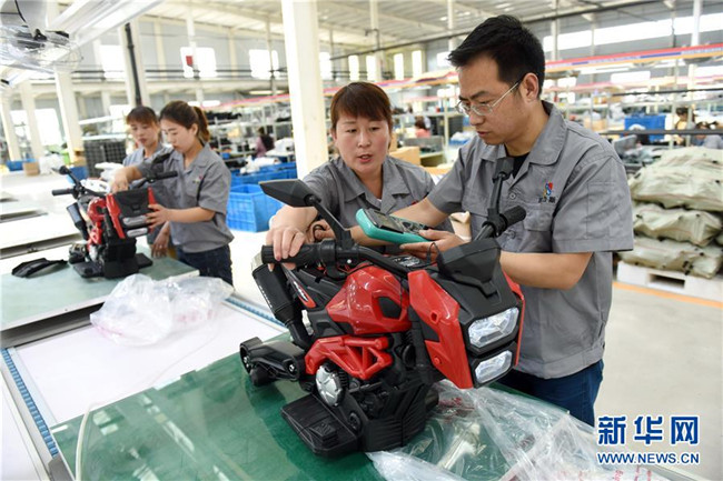河北省邢臺經(jīng)濟開發(fā)區(qū)一家民營玩具生產(chǎn)企業(yè)的工人對產(chǎn)品進行出廠檢測(5月29日攝)。新華社記者 朱旭東 攝