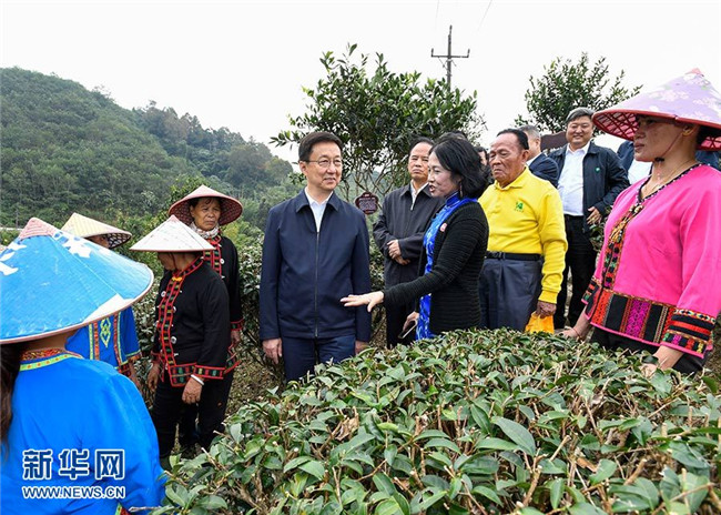 11月9日至11日,中共中央政治局常委、國務院副總理韓正在海南調(diào)研。圖為11月10日,韓正在五指山椰仙有機茶生態(tài)觀光園,了解高山雨林有機茶種植等特色產(chǎn)業(yè)培育、病蟲害物理防治、種植產(chǎn)業(yè)和旅游產(chǎn)業(yè)融合發(fā)展等情況,與正在茶園工作的當?shù)剞r(nóng)民和貧困戶交流。 新華社記者 高潔 攝