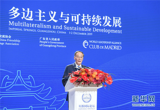 12月1日,國(guó)家副主席王岐山在廣州出席“2019從都國(guó)際論壇”開(kāi)幕式并致辭。 新華社記者 申宏 攝