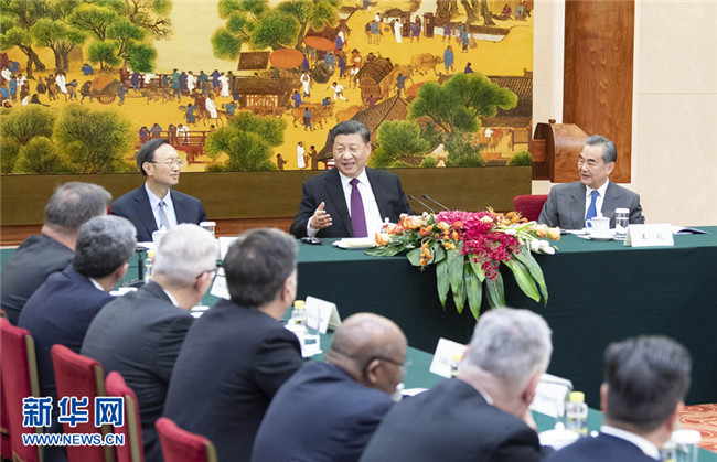 國(guó)家主席習(xí)近平3日在人民大會(huì)堂會(huì)見出席“2019從都國(guó)際論壇”外方嘉賓。