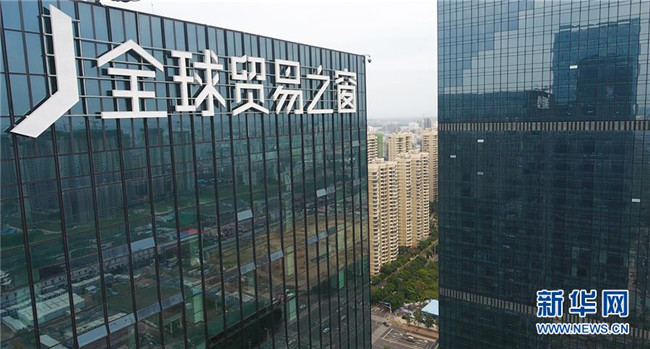 12月5日無人機(jī)拍攝的位于??谑写笥⑸紺BD的??谌蛸Q(mào)易之窗大廈。  新華社記者 楊冠宇 攝