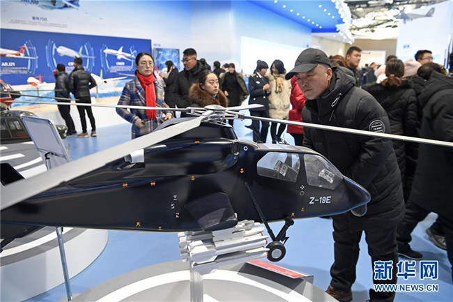 12月30日,觀眾在銀川航空館觀看展出的直升機(jī)模型。