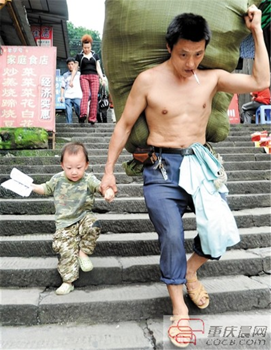 “其實出不出名,還不是一樣!都是要靠力氣掙錢養(yǎng)家!”冉光輝說。自從十年前那張照片出現(xiàn)在網(wǎng)上,就時不時有人來找他合影,他都欣然接受。但拍完照,他依然拿起棒棒,繼續(xù)扛貨。