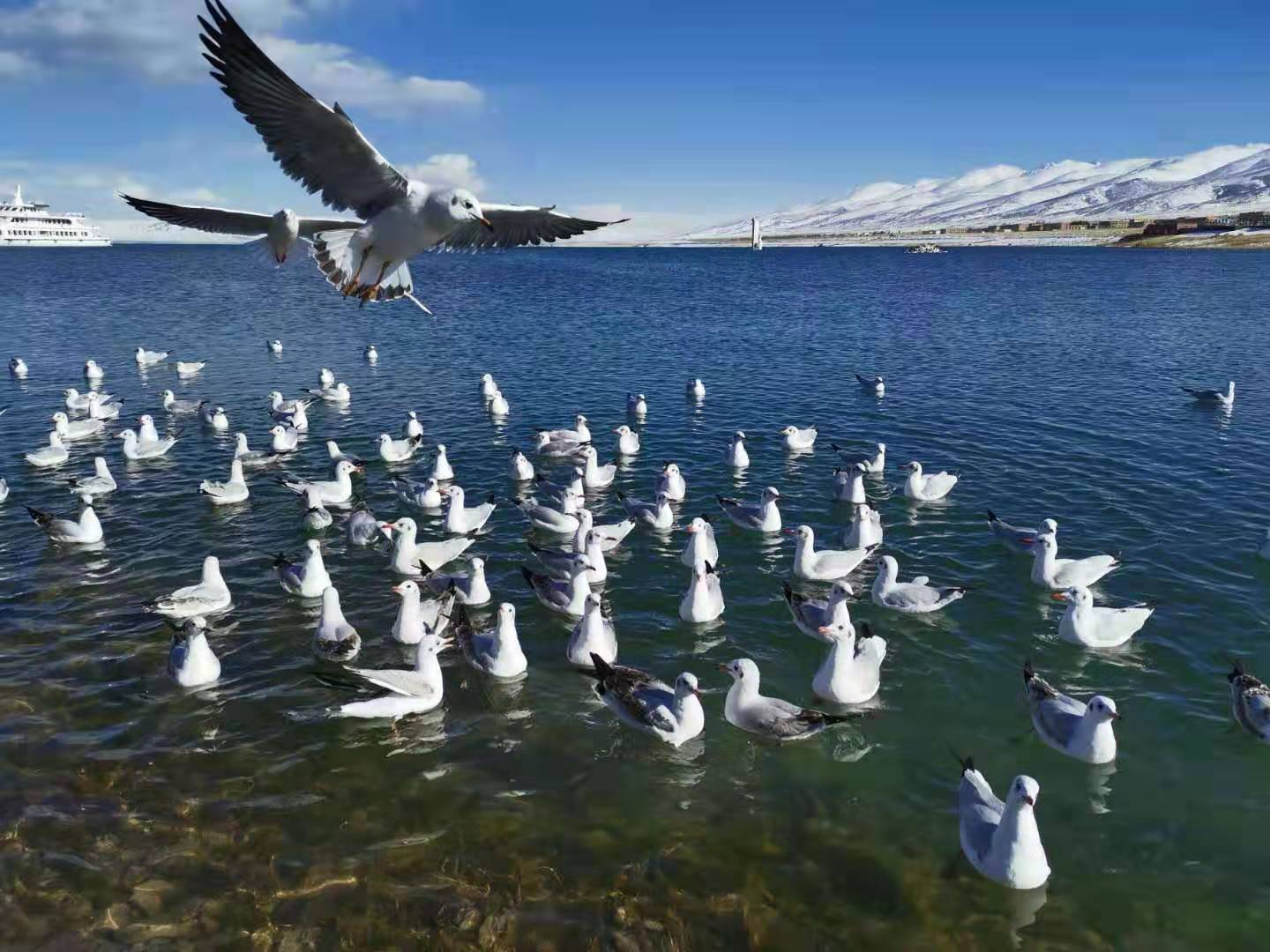 青海湖是中亞—印度、東亞—澳大利亞國際水鳥遷徙的重要節(jié)點(diǎn)和青藏高原水鳥重要的越冬地,水鳥種類95種,占青藏高原水鳥種類的70%,約占全國水鳥種類的33%,每年在青海湖繁殖的斑頭雁、棕頭鷗、漁鷗、普通鸕鶿繁殖種群達(dá)到全球繁殖種群的30%,每年春、秋兩季,途經(jīng)青海湖遷徙停留的水鳥達(dá)10萬余只,其中有11—14種水鳥的種群數(shù)量達(dá)到或超過全球分布種群數(shù)量的1%,每年冬季在青海湖越冬水鳥1萬余只,其中國家Ⅱ級保護(hù)動物大天鵝約1500只。國家Ⅰ級重點(diǎn)保護(hù)動物黑頸鶴在青海湖濕地草甸地帶棲息繁殖。