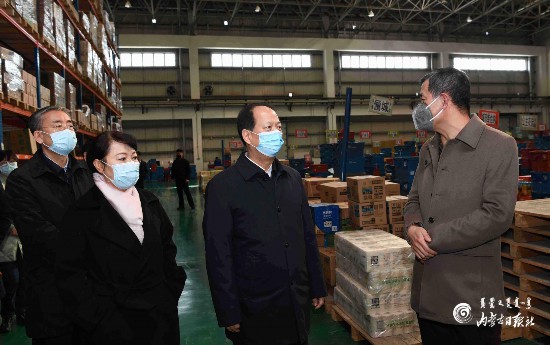 3月12日,自治區(qū)黨委書記、人大常委會(huì)主任石泰峰來(lái)到呼和浩特市沙良物流園區(qū),了解倉(cāng)儲(chǔ)物流運(yùn)輸情況。內(nèi)蒙古日?qǐng)?bào)社融媒體記者 袁永紅 攝