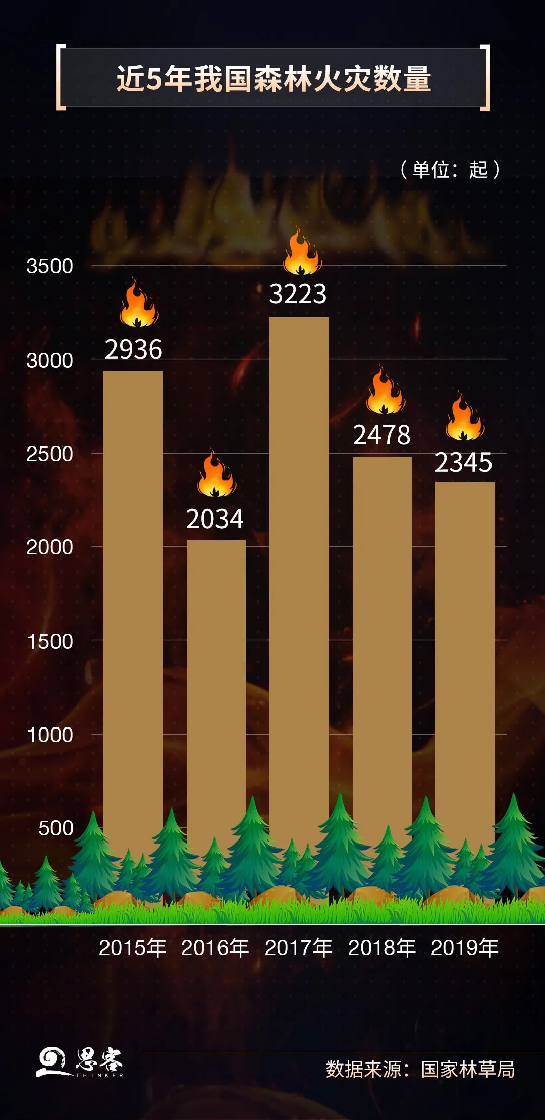 2019年,我國全年共發(fā)生森林火災2345起,受害森林面積約1.35萬公頃,與2018年比,分別下降5.4%和17.2%。溫度、降水和濕度與森林火災息息相關,因此,干燥的冬春季節(jié)和春夏之交是我國森林火災的易發(fā)高發(fā)期。從區(qū)域上看,華北地區(qū)、西南地區(qū)風險較高。