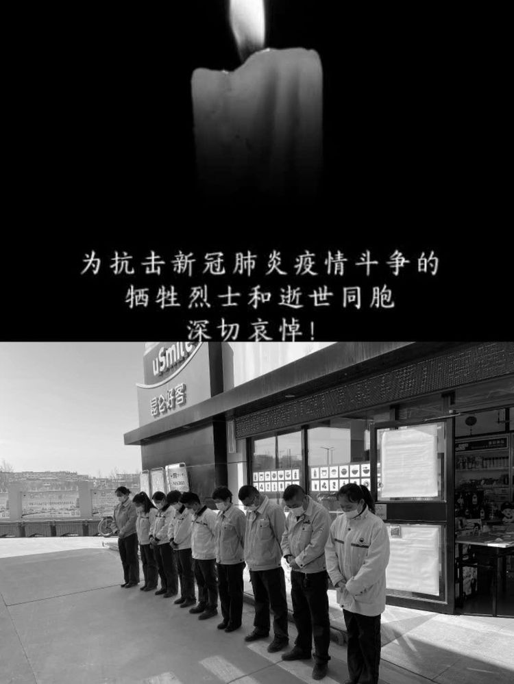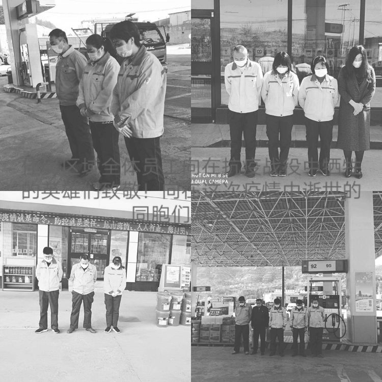 4月4日10時,分公司機關(guān)、各區(qū)域和加油站有懸掛國旗的全部下半旗志哀,員工默哀3分鐘,在確保安全和正常經(jīng)營秩序的前提下,部分加油站組織進站車輛鳴笛志哀。