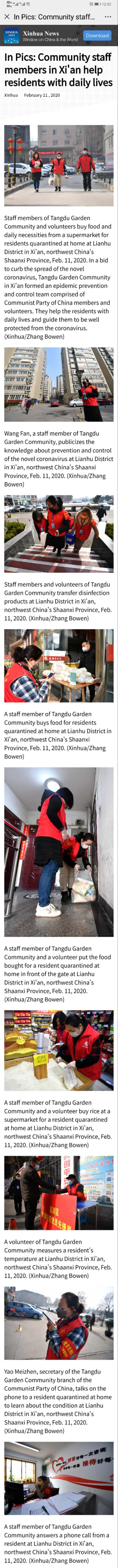 2月11日,新華社海外版用英文大篇幅報道了自新冠肺炎疫情發(fā)生以來,蓮湖區(qū)唐都花園社區(qū)充分發(fā)揮基層黨組織戰(zhàn)斗堡壘作用和黨員先鋒模范作用,形成了“黨支部+志愿服務(wù)隊”社區(qū)疫情防控體系,切實幫助居民解決日常生活困難,引導(dǎo)和鼓勵群眾做到群防群控。