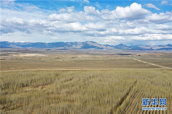 近年來(lái),新疆阿勒泰市利用經(jīng)污水處理廠處理達(dá)標(biāo)后的中水,灌溉建在戈壁灘上的苗圃基地,形成良性循環(huán),助力綠化工程,改善生態(tài)環(huán)境。從2017年至今,阿勒泰市中水回用環(huán)境治理示范園已為當(dāng)?shù)鼐G化工程提供40萬(wàn)株樹(shù)苗,實(shí)現(xiàn)5000畝荒山綠化。新華社記者丁磊攝