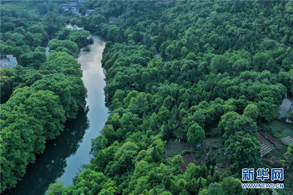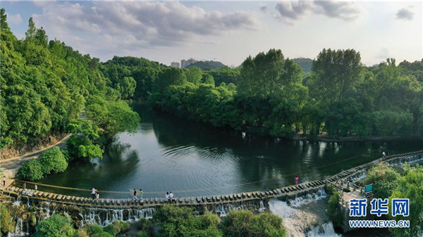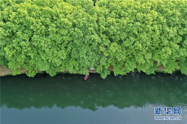 這是5月19日拍攝的貴陽市花溪國家城市濕地公園黃金大道(無人機照片)。近日,貴州省貴陽市花溪國家城市濕地公園黃金大道綠意盎然,美景如畫。新華社記者歐東衢攝