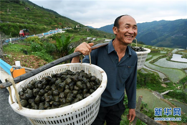 在田螺養(yǎng)殖過(guò)程中,采取“公司+合作社+農(nóng)戶”的模式,政府統(tǒng)一向龍頭公司采購(gòu)種螺交給合作社,合作社根據(jù)貧困戶水田規(guī)模和意愿發(fā)放種螺,同時(shí)公司技術(shù)人員入村開(kāi)展養(yǎng)殖技術(shù)培訓(xùn),田螺收獲時(shí)再由合作社對(duì)接種螺公司統(tǒng)一上門按保底價(jià)回收,解除了貧困戶養(yǎng)殖和銷售的后顧之憂,進(jìn)一步拓寬山區(qū)群眾脫貧增收渠道。 新華社記者 楊文斌 攝