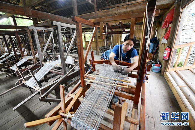 家住貴州省榕江縣栽麻鎮(zhèn)豐登侗寨的“80后”侗族女青年楊成蘭2016年與丈夫放棄城里的工作,選擇回到侗寨創(chuàng)業(yè)。夫妻倆利用兩間廢棄民房改造成廠房,依托家鄉(xiāng)土布的織造工藝,進行手工織布、服裝服飾、家居飾品等系列布藝產(chǎn)品的制作和加工,并依托電商平臺銷售。