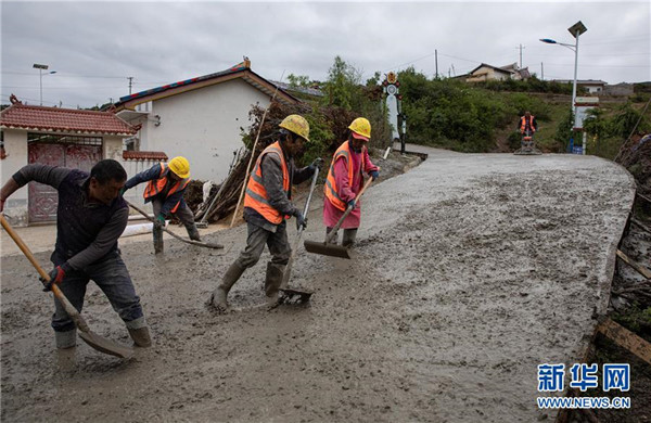四川路橋公司的工人在金陽縣依達(dá)鄉(xiāng)保爾村對(duì)破損路面進(jìn)行整治(6月5日攝)。坐落在金沙江畔的四川省金陽縣是國(guó)家級(jí)深度貧困縣,境內(nèi)群山連綿起伏,海拔落差大,眾多村寨處于高山或者高半山上,道路施工難度大。近年來,當(dāng)?shù)卣畬⒔煌ㄗ鳛槊撠毠?jiān)的先導(dǎo)性工程,路越修越寬、越修越好,成為當(dāng)?shù)厝罕姷拿撠氈赂宦?。截?019年底,金陽縣實(shí)現(xiàn)所有鄉(xiāng)鎮(zhèn)通油路、建制村通硬化路,鄉(xiāng)道里程達(dá)329.9公里,村道里程達(dá)866.8公里。新華社記者江宏景攝