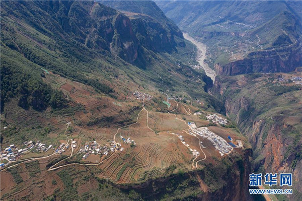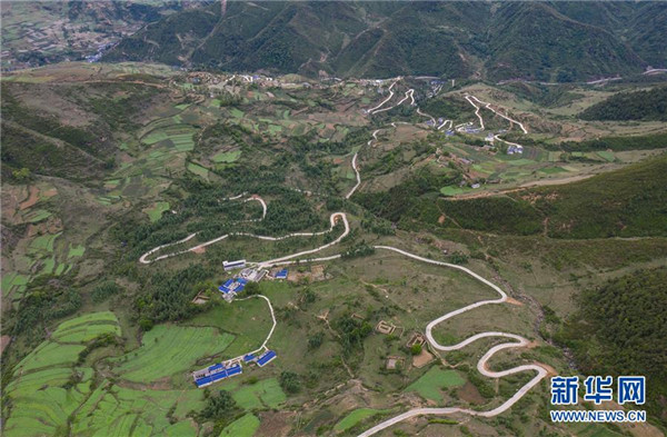 金陽縣天地壩鎮(zhèn)通往吉史里口村易地扶貧搬遷集中安置點(diǎn)的道路(6月7日攝,無人機(jī)照片)。坐落在金沙江畔的四川省金陽縣是國(guó)家級(jí)深度貧困縣,境內(nèi)群山連綿起伏,海拔落差大,眾多村寨處于高山或者高半山上,道路施工難度大。近年來,當(dāng)?shù)卣畬⒔煌ㄗ鳛槊撠毠?jiān)的先導(dǎo)性工程,路越修越寬、越修越好,成為當(dāng)?shù)厝罕姷拿撠氈赂宦?。截?019年底,金陽縣實(shí)現(xiàn)所有鄉(xiāng)鎮(zhèn)通油路、建制村通硬化路,鄉(xiāng)道里程達(dá)329.9公里,村道里程達(dá)866.8公里。新華社記者江宏景攝