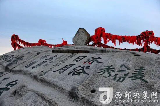 西峰為一塊完整巨石,渾然天成。西北絕崖千丈,似刀削鋸截,其陡峭巍峨、陽剛挺拔之勢是華山山形之代表,因此古人常把華山叫蓮花山。華山西峰就是《寶蓮燈》中沉香劈山救出三圣母的地方。現(xiàn)在翠云宮邊上有一巨石中間裂開,如被斧劈名“斧劈石”,旁邊還樹立一柄長把大斧。峰的西北面,直立如刀削,空絕萬丈,人稱舍身崖。峰上崖壁題刻遍布,工草隸篆,琳瑯滿目。峰北絕頂叫西石樓峰,峰上楊公塔為楊虎城將軍所建,塔上有楊虎城將軍親筆題辭。塔下巖石上有“枕破鴻蒙”題刻,是書法家王鐸手跡。