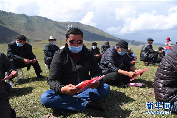 6月20日,在布爾津縣阿貢蓋提草原,牧民在看布爾津縣也格孜托別鄉(xiāng)克孜勒托蓋村家庭醫(yī)生簽約團(tuán)隊發(fā)放的宣傳材料。圍繞實(shí)現(xiàn)人人享有基本醫(yī)療衛(wèi)生服務(wù)目標(biāo),2016年起,新疆布爾津縣開展家庭醫(yī)生簽約服務(wù)工作。該縣組建家庭醫(yī)生簽約團(tuán)隊65個,團(tuán)隊醫(yī)務(wù)人員233名,通過手機(jī)APP、基本公衛(wèi)系統(tǒng)與全縣建檔立卡貧困戶進(jìn)行電子化簽約,提升村醫(yī)隨訪的工作效率和質(zhì)量。截至目前,已完成簽約42936人,履約40043人。新華社記者沙達(dá)提攝