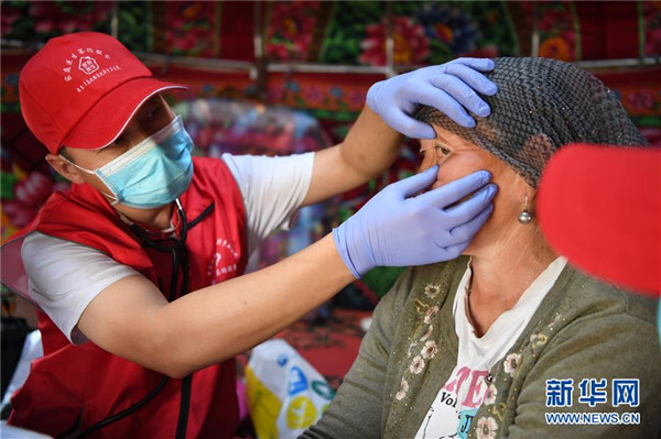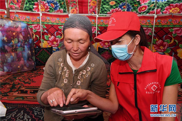 6月20日,新疆阿勒泰地區(qū)布爾津縣也格孜托別鄉(xiāng)克孜勒托蓋村村醫(yī)來到布爾津縣黑流灘草原給牧民巴合提古麗·塔拉甫汗檢查身體。圍繞實(shí)現(xiàn)人人享有基本醫(yī)療衛(wèi)生服務(wù)目標(biāo),2016年起,新疆布爾津縣開展家庭醫(yī)生簽約服務(wù)工作。該縣組建家庭醫(yī)生簽約團(tuán)隊65個,團(tuán)隊醫(yī)務(wù)人員233名,通過手機(jī)APP、基本公衛(wèi)系統(tǒng)與全縣建檔立卡貧困戶進(jìn)行電子化簽約,提升村醫(yī)隨訪的工作效率和質(zhì)量。截至目前,已完成簽約42936人,履約40043人。新華社記者沙達(dá)提攝