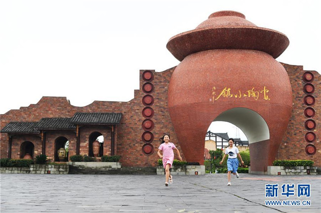 6月27日,小朋友在安陶小鎮(zhèn)游玩。新華社記者 王全超 攝