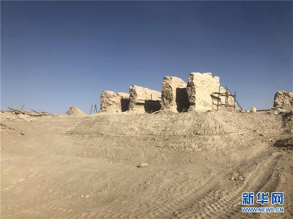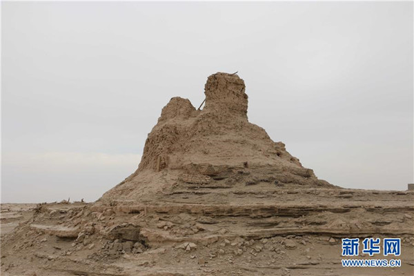 這是樓蘭古城內(nèi)的佛塔遺址(2019年11月11日攝)。新華社發(fā)(中鐵西北科學研究院有限公司提供)