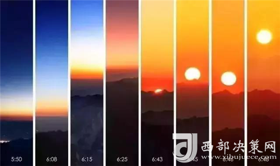 是時,但見夜幕自東方悄然隱退,晨曦初露,漸漸霞光瑰麗,云海奔涌。
