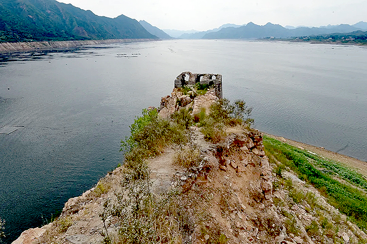 1975年至1981年,為了給天津供水,利用這里的山形地勢(shì),在灤河上游寬城、遷西、興隆三縣交界處,修建了潘家口水庫(kù)。引灤入津工程橫切長(zhǎng)城,喜峰口、潘家口兩座雄關(guān)鑲?cè)胍惶侗滩?,從而形成萬(wàn)里長(zhǎng)城一處絕景——“水下長(zhǎng)城”。