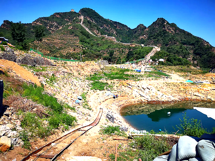 項(xiàng)目現(xiàn)場(chǎng)施工負(fù)責(zé)人表示,這段長(zhǎng)城的修繕,其實(shí)不是修繕已經(jīng)完全淹入水下的部分,而是修繕露在水面之上的部分,或者說(shuō)是在枯水季節(jié)能露在水面之上的部分。但因處于水庫(kù)旁,施工材料通過(guò)陸路、水路、山路才能到達(dá)施工現(xiàn)場(chǎng),修繕難度極大。