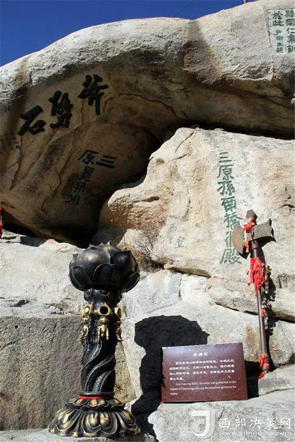 來(lái)到北峰,不可不提的自然是華山論劍了,在峰頂有一塊石牌,上面是金庸先生親筆題寫的“華山論劍”,此處也成為游客登臨華山必到之處。