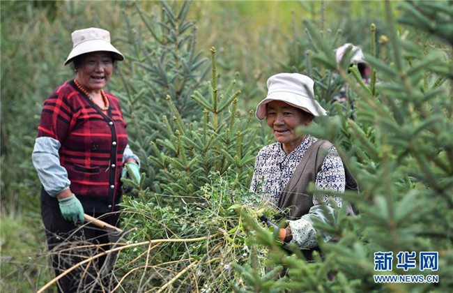 西藏昌都察雅縣卡貢鄉(xiāng)卡貢村村民在苗圃產(chǎn)業(yè)基地進行除草作業(yè)(9月28日攝)。新華社記者 晉美多吉 攝