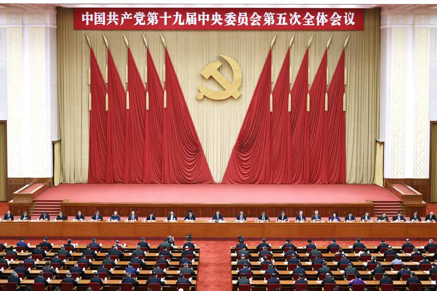 中國(guó)共產(chǎn)黨第十九屆中央委員會(huì)第五次全體會(huì)議,于2020年10月26日至29日在北京舉行。中央政治局主持會(huì)議。 新華社記者 殷博古 攝
