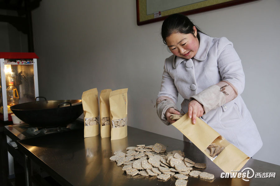 80后鄧國(guó)紅到作坊小鎮(zhèn)做花生芝麻糖。