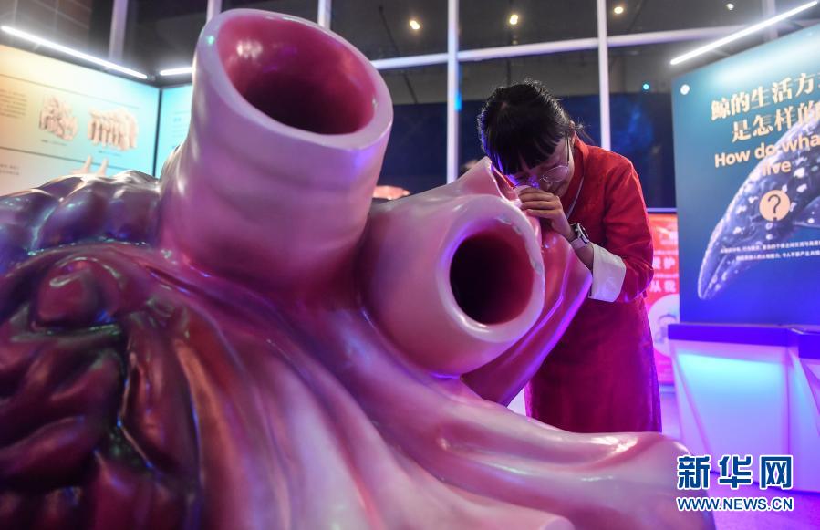 在西藏自治區(qū)自然科學博物館,一名拉薩市實驗小學的學生在《鯨奇世界》海洋主題巡展上觀看鯨魚心臟模型(10月30日攝)。來自上??萍拣^的海洋主題巡展《鯨奇世界》是2020年科技部“科普援藏”系列活動之一。新華社記者 晉美多吉 攝