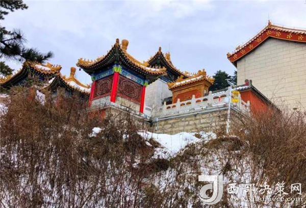 金天宮,建造得金碧輝煌,從遠(yuǎn)處看白雪覆蓋下的道觀很惹眼……