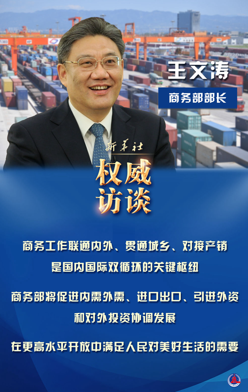 “商務部一頭連著國內大循環(huán),一頭連著國際大循環(huán),在國內大循環(huán)和國際大循環(huán)聯動中商務部能發(fā)揮重要作用。”王文濤說。