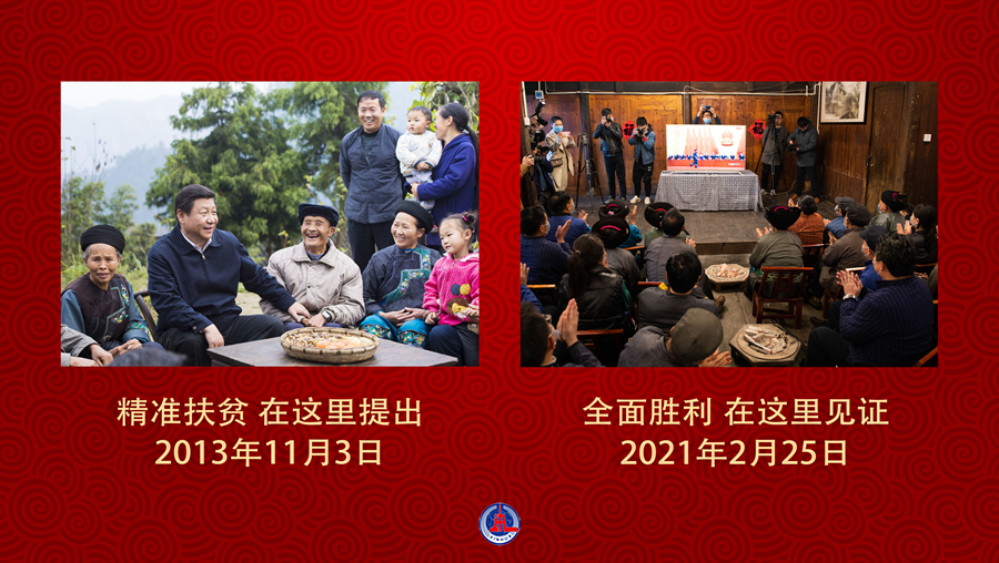 左圖:2013年11月3日下午,習(xí)近平總書(shū)記在湖南省湘西土家族苗族自治州花垣縣排碧鄉(xiāng)十八洞村同村干部和村民座談,在此首次提出“精準(zhǔn)扶貧”(新華社記者 王曄 攝)。