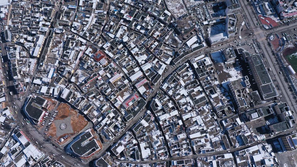 ↑ 圖為2021年3月10日拍攝的玉樹市一處商業(yè)區(qū)(地震前為結(jié)古寺賓館)。