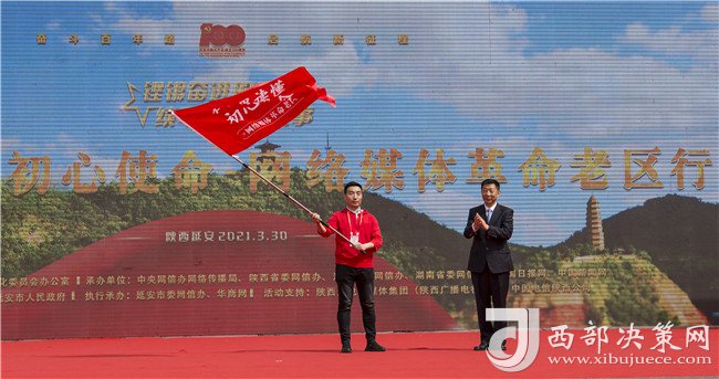 主會場活動結(jié)束后,陜西分會場“在這里讀懂初心使命——網(wǎng)絡(luò)媒體革命老區(qū)行”網(wǎng)絡(luò)主題采訪活動在延安寶塔山游客廣場正式啟動。趙剛在分會場啟動儀式上講話并向采訪團授旗。陜西省委網(wǎng)信辦主任鮑永能主持啟動儀式。中央網(wǎng)信辦網(wǎng)絡(luò)傳播局副局長邵波濤,陜西省委網(wǎng)信辦副主任王利參加啟動儀式。延安市委副書記、政法委書記嚴(yán)漢平在啟動儀式上致辭。媒體團代表中國新聞網(wǎng)負(fù)責(zé)人吳慶才作表態(tài)發(fā)言。