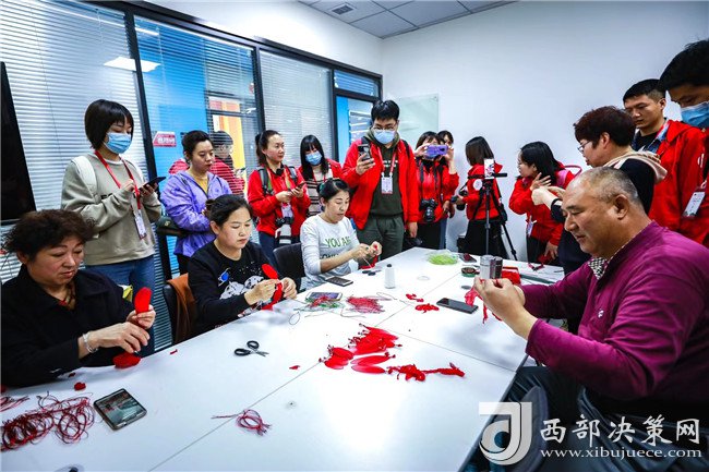 西部決策網(wǎng)訊 一折、一卷、六朵花瓣整齊羅列,細(xì)鐵絲緊緊繞圈固定,一朵火紅的手工花便成型了。“這個是我們的一些手工藝品,都是有延安特色的,如果你們想學(xué)的話,隨時來,我們這里免費培訓(xùn)。”3月30日,在延安市寶塔區(qū)電商直播融合孵化服務(wù)中心的直播間里,60歲的退休工人董智玲正在直播間里給網(wǎng)友直播手工藝品制作,引來了眾多記者的圍觀。