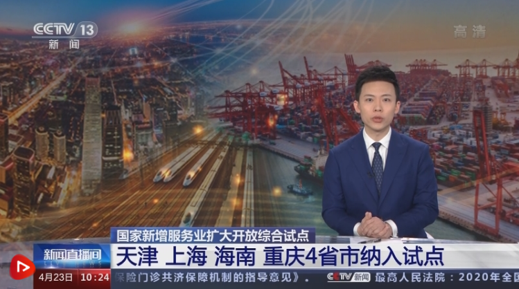 央視網(wǎng)消息:商務(wù)部今天(4月23日)舉行專題新聞發(fā)布會(huì),外資司有關(guān)負(fù)責(zé)人介紹,在支持北京建設(shè)國(guó)家服務(wù)業(yè)擴(kuò)大開(kāi)放綜合示范區(qū)的同時(shí),日前,國(guó)務(wù)院批復(fù)同意將天津、上海、海南、重慶4省市納入服務(wù)業(yè)擴(kuò)大開(kāi)放綜合試點(diǎn)。