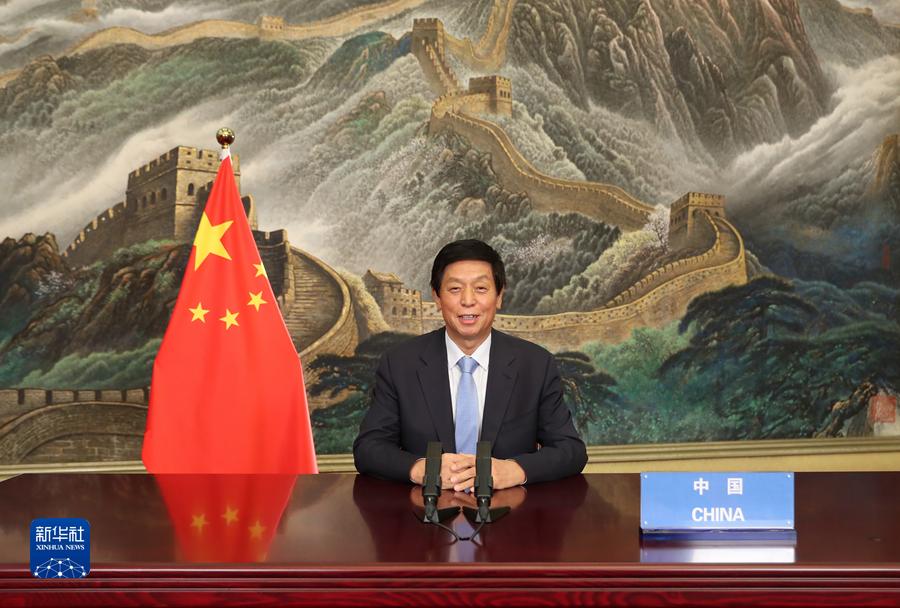 全國人大常委會(huì)委員長栗戰(zhàn)書7日在第五次世界議長大會(huì)發(fā)表視頻致辭。